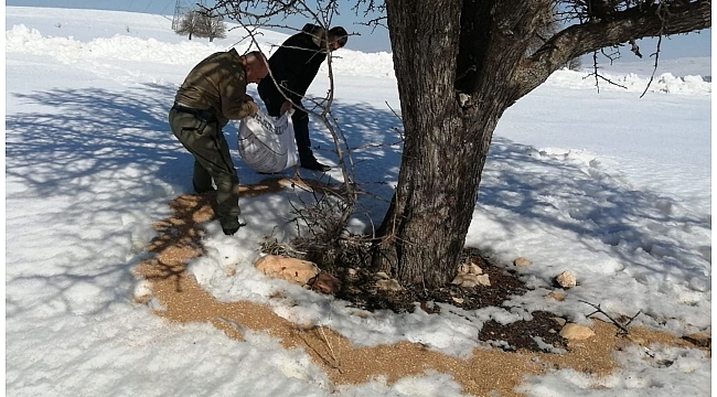 Elazığ'da kış mevsimi nedeniyle yüksek rakımlı bölgelere yaban hayvanları için yem bırakıldı.