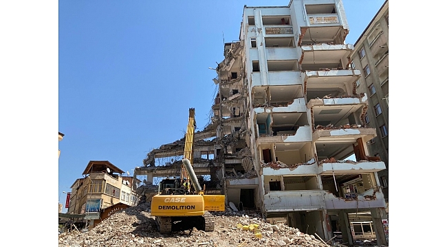 Elazığ depreminin ardından hasar alan yapılarla ilgili hak sahipliği sürecinin tamamlanmasıyla hızlanan yıkım çalışmaları kent merkezi dahil şehrin bir çok noktasında aralıksız sürüyor.