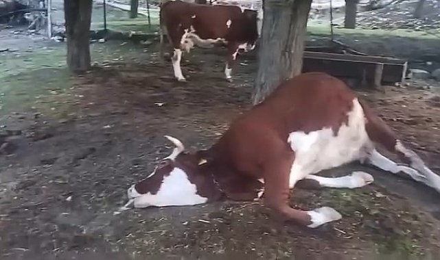 Elazığ'ın Palu ilçesinde yıldırım düşmesi sonucu 2 inek telef oldu.