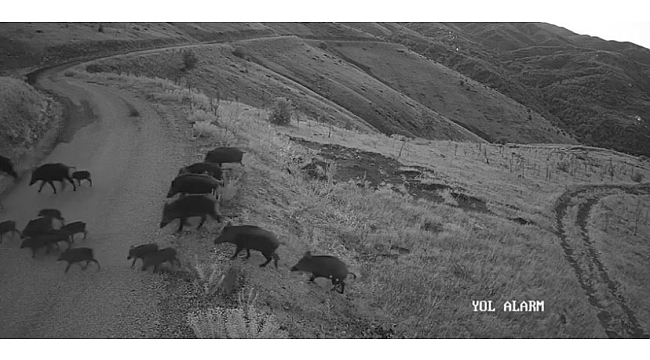 Elazığ'da yiyecek arayan domuz sürüsü kameralara yansıdı.