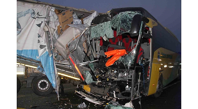 Elazığ'da yolcu otobüsü ile tırın çarpışması sonucu meydana gelen kazada, 1 kişi hayatını kaybederken 32 kişi de yaralandı.