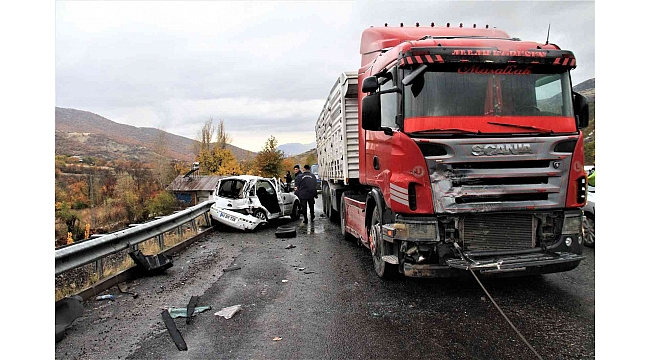 Elazığ'da tır ile otomobilin çarpışması sonucu meydana gelen kazada ağır yaralanan iki kişiden biri hayatını kaybetti.