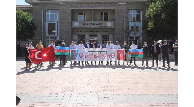 Kardeş ülke Azerbaycan'da son zamanlarda yaşanan hadiselerin herkes tarafından bilindiğini belirten Genç Eğitim Bir Sen Şube Başkanı Berdan Ölçücü "Zira bu hadisenin bugünün meselesi olmadığını ve tarihe geçmiş kara bir leke olarak günümüze kadar geldiğini bütün dünya bilmektedir. Ermenistan 30 sene önce uluslararası hukuku hiçe sayarak, Azerbaycan toprağı olan Karabağ'ı işgal etmiş ve bu işgal esnasında hiçbir ahlaki kural tanımayan saldırganlığı ile adeta bir katliam gerçekleştirmiştir. Azerbaycan topraklarının neredeyse beşte birini işgal eden ve milyonlarca insanı yurtlarından ederek, başta biliyoruz. Ancak ne acıdır ki bütün dünya devletlerinin söz konusu 'biz'olunca ortaya koyduğu 'üç maymun'u oynama tavrı yine değişmemiş ve Azerbaycan'ın haklı mücadelesi her koşulda uluslararası camiada örselenmiştir" dedi.
