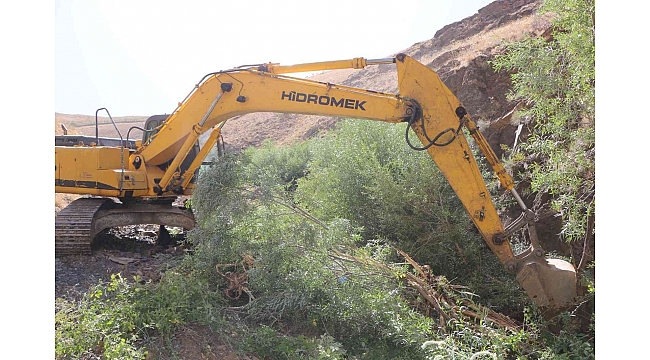 Elazığ'da İl Özel İdare ekiplerinin derelerde ıslah çalışması sürüyor.