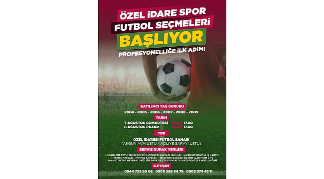 Elazığ futbolunun altyapı lokomotifi İl Özel İdarespor, yeni futbolcuları ülke futboluna kazandırmak için futbolcu seçmeleri yapacak.