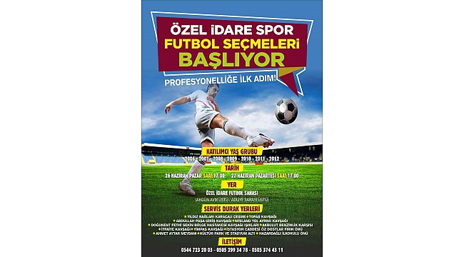 Türk futboluna birçok sporcu kazandıran İl Özel İdaresi Spor Kulübü tarafından, futbolcu seçmeleri yapılacak.