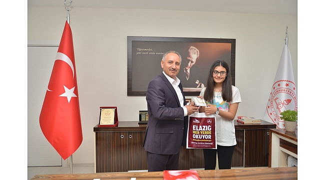 Elazığ'da Liselere Geçiş Sınavı'nda (LGS) 500 puan alarak birinci olan Sare Yıldız, İl Milli Eğitim Müdürünü ziyaret ederek, Galatasaray Lisesine gitmek istediğini söyledi.