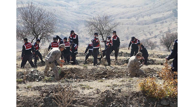 Elazığ'da İl Jandarma Komutanlığına bağlı ekipler, daha yeşil bir gelecek adına tarihi Harput Mahallesinde 2 bin fidanı toprakla buluşturdu.
