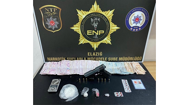 Elazığ Cumhuriyet Başsavcılığı koordinesinde İl Emniyet Müdürlüğü Narkotik Suçlarla Mücadele Şube Müdürlüğü tarafından uyuşturucu ile mücadele çerçevesinde, sokak satıcılarına yönelik 5 Nisan'da çalışma gerçekleştirildi. Yapılan çalışmalarda, 1 şüpheli şahsın yapılan ikamet aramasında 1 adet ruhsatsız tabanca ve tabancaya ait 7 adet fişek, 4 parça halinde 38.43 gram metamfetamin maddesi, 18 adet sentetik ecza maddesi, 1 adet sahte kimlik, 1 adet hassas terazi, uyuşturucu madde ticaretinden elde edilen 48 bin 800 lira ele geçirildi.