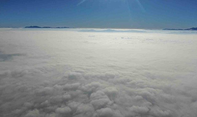 Güneşin sisin üzerinden yükselerek ortaya çıkardığı eşsiz manzara görenleri kendine hayran bıraktı.