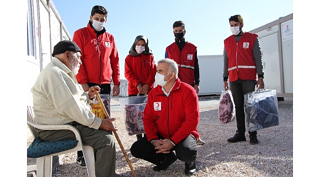 Türk Kızılay, Elazığ'da 24 Ocak'ta meydana gelen deprem sonrası konteyner kentlerde kalan depremzedelere bin adet battaniye, yatak ve yastık yardımı yaptı.