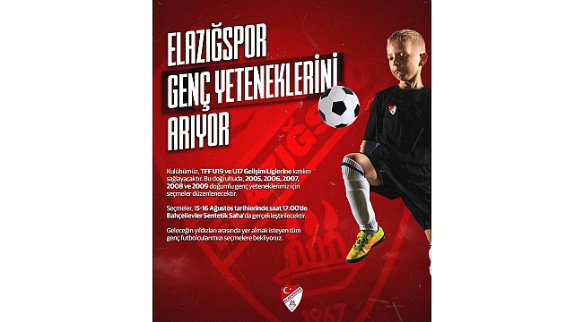 Elazığspor Kulübü, takımın alt yapısına kazandırılması amacıyla futbolcu seçmeleri yapacak.