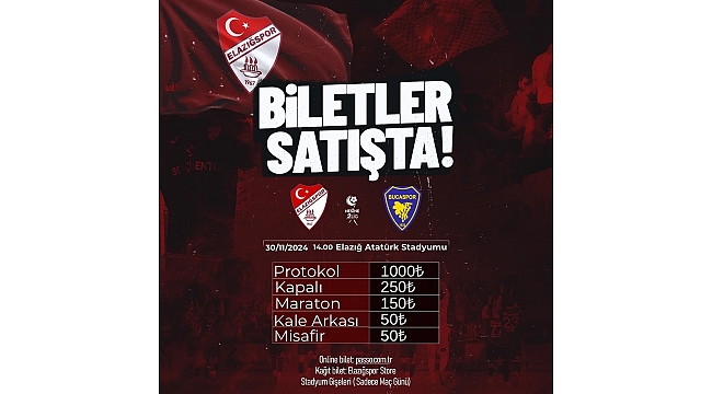 Elazığspor Kulübü, cumartesi günü oynanacak olan Bucaspor 1928 maçı biletlerinin satışa çıkarıldığını duyurdu.