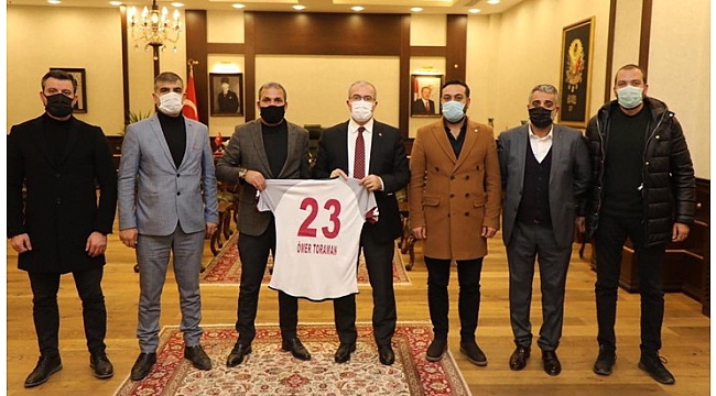 Elazığspor başkanlığına ikinci kez seçilen Serkan Çayır ve yönetim kurulu üyeleri, Elazığ Valisi Dr. Ömer Toraman'ı makamında ziyaret etti.