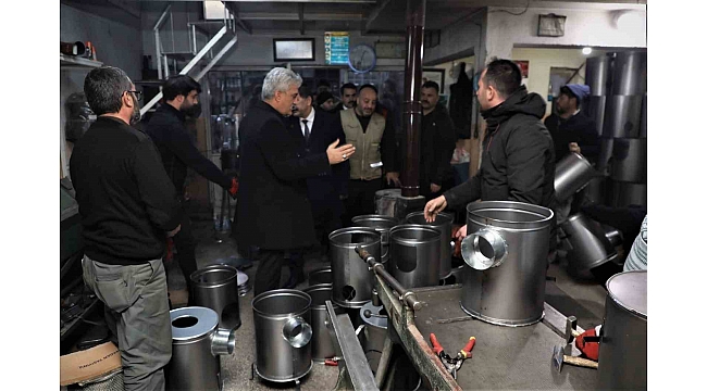 Vali Makas daha sonra beraberindekiler ile birlikte demirci ve sobacı esnaflar ile bir araya gelerek soba üretimi yapılan atölyeleri ziyaret etti ve çalışmalar hakkında bilgiler aldı.