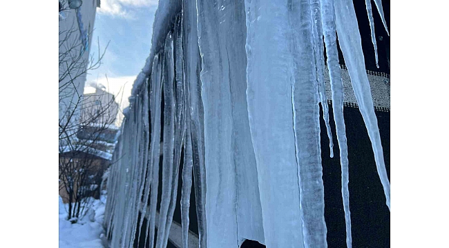 Erzurum'da etkisini gösteren soğuk hava çevreyi adeta buza çevirdi. Yer yer buz sarkıtları 3 metreye kadar ulaşırken termometreler ise eksi 14 dereceyi gösterdi.