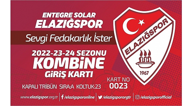 TFF 3. Lig'de mücadelesine devam eden Elazığspor, yeni bir kampanya ile kulübe kaynak oluşturmak istiyor. Bordo-beyazlı ekip, 'Sevgi Fedakarlık İster' sloganıyla 1.5 sezonu kapsayacak bir kombine bilet kampanyasını hayata geçiriyor. Konuya ilişkin olarak kulüpten yapılan açıklamada; "Evimize Dönüyoruz. 2022-2023 sezonu ikinci yarısı ve 2023-2024 sezonu kombine biletleri yakın bir zamanda satışa çıkacak. Konuyla alakalı bilgiler düzenlenecek basın toplantısıyla kamuoyu ile paylaşılacaktır" denildi.