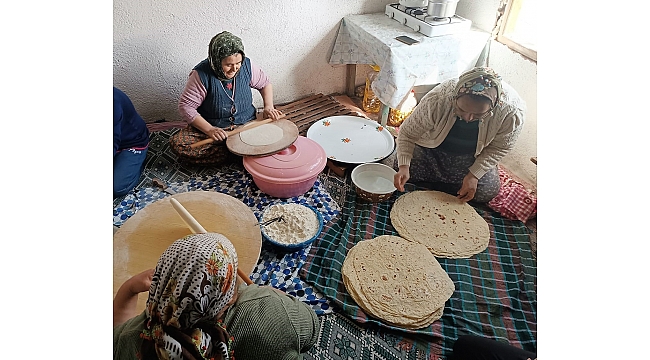 Denizli'nin Çameli ilçesinde, ev hanımları tarafından deprem bölgesinde bulunan vatandaşlar için imece usulü bazlama, yufka, ekmek ve soğuk sandviç gibi gıda ürünleri yapılıyor.