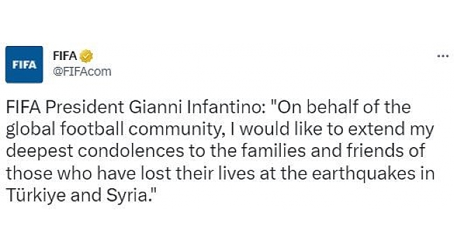 FIFA Başkanı Gianni Infantino, depremlerde hayatını kaybeden vatandaşlar için başsağlığı mesajı yayımladı.