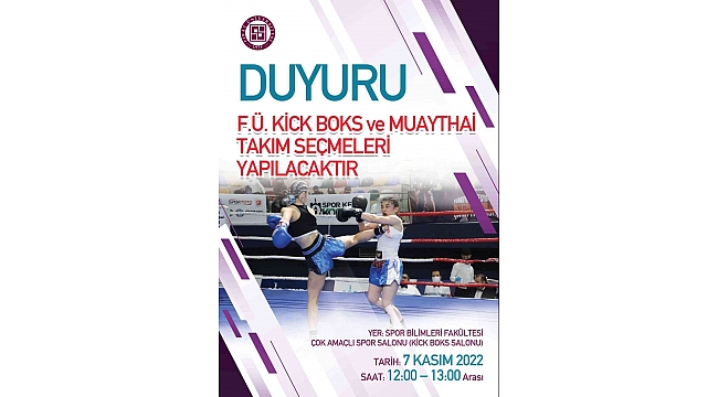 Fırat Üniversitesi kick boks ve muaythai takımları için sporcu seçmeleri yapacak.