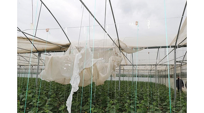 Kurumdan yapılan açıklamada ise," İl Müdürümüz Turan arahan ve teknik ekibi ilimizde dün akşam saatlerinde yaşanan şiddetli fırtına yüzünden seraları zarar gören Yurtbaşı Beldesi Akmezra Mahallesindeki üreticileri ziyaret ederek, zarar-ziyan tespitinde bulundu"denildi.