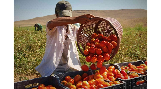 Elazığ'da domates hasadının devam ettiğini belirten işçilerden Özgür Arak, "Domateste verim geçen seneye göre daha çok. Sabahın erken saatlerinde başlıyoruz akşam 18.00'a kadar devam ediyoruz" diye konuştu.
