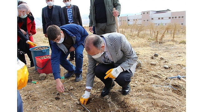 Rektörü Prof. Dr. Fahrettin Göktaş, Meslek Yüksekokulu bünyesinde kurulan 'Çevre Geliştirme ve Fidan Üretim Merkezi'nde üretimi yapılacak olan sertifikalı ceviz ve badem fidanlarının ilçe halkına hibe olarak verileceğini aktardı.