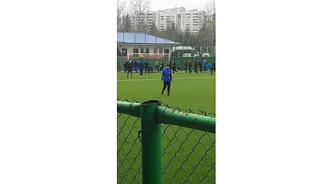 Kavga anı tribünde yer alan bir taraftarın cep telefonu kamerasıyla kaydedildi.