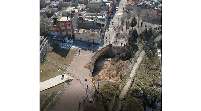 Kahramanmaraş merkezli yaşanan 2 büyük depremin ardından Gaziantep'te bir parkta 30 metre genişliğinde 8 metre derinliğinde dev obruk oluştu.