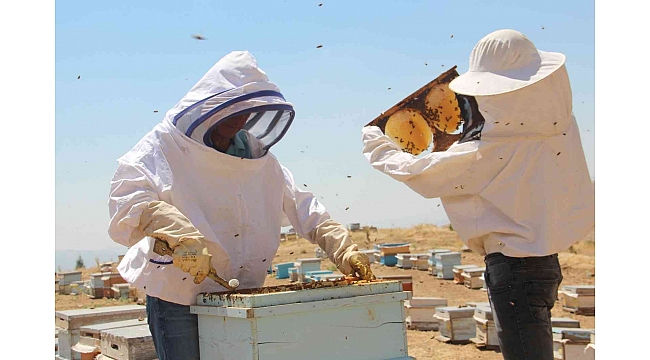 Elazığ'da sıcaklıkların mevsim normallerinin 2 ile 4 derece üzerinde seyretmesi herkes gibi arıcıları da etkiliyor. Bal sağımının devam etmesi ile arıcılar neredeyse tüm gününü kovanların başında geçiriyor. Güneş altında ve maske içerisinde çalışan arıcılar, bir yılın emeği almak için zorlu bir mesai harcıyor. Hava sıcaklığı 40 dereceyi bulurken bu, maske içerisinde ve güneşin anlında daha artıyor. Tatlı bir hasat için güneşin alında alın ter içerisinde kalan arıcılar, işini severek yapıyor.