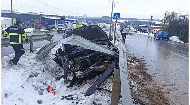 Kaza, Samsun-Sinop karayolunda meydana geldi. Edinilen bilgiye göre, Sinop istikametine seyir halinde olan Mehmet D. idaresindeki 34 ZL 9176 plakalı hafif ticari araç, Bafra girişinde sürücünün direksiyon hakimiyetini kaybetmesi üzerine refüjdeki bariyerlere çarptı. Kazayı gören vatandaşların 112'ye ihbarı üzerine olay yerine sağlık, polis ve itfaiye ekipleri sevk edildi. Kazada araçta sıkışan Nazmiye D. Samsun Büyükşehir Belediyesi ekipleri tarafından araçtan çıkartıldı. Kazada yaralanan araç sürücüsü Mehmet D. ve Nazmiye D. sağlık ekiplerince Bafra Devlet Hastanesine kaldırıldı.