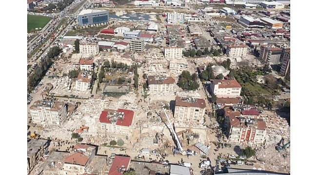 Türkiye'yi derinden sarsan Kahramanmaraş merkezli depremlerden en çok etkilenen illerden Hatay'da arama kurtarma çalışmaları sürerken, depremin 7. gününde ortaya çıkan yıkım dron ile havadan görüntülendi. Hatay'da çekilen dron görüntülerine, insanların ve ekiplerin enkaz çevresindeki kurtarma çalışmaları ve oluşan yoğunluk yansıdı.