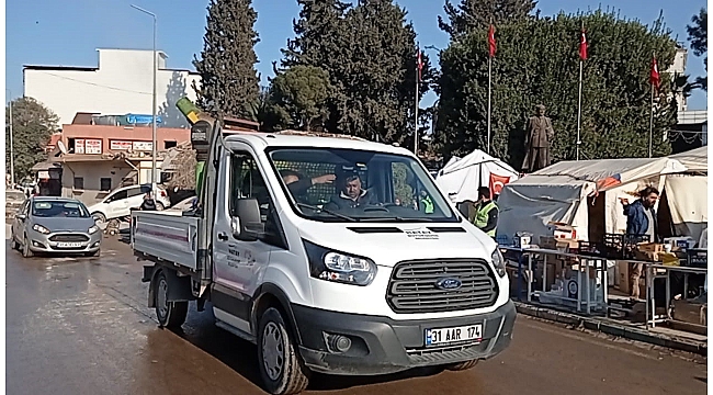 Depremde büyük yıkımın yaşandığı Hatay'ın Kırıkhan ilçesinde belediye ekipleri tarafından dezenfekte çalışmaları başlatıldı. Muhtemel bir virüs salgınının önlenmesi amacıyla şehrin her yeri araçlarla dezenfekte ediliyor.