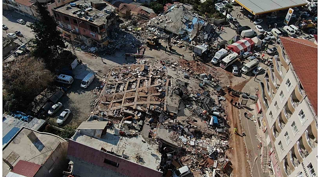 Bölge dron ile görüntülenirken, enkaz kaldırma çalışmalarının sürdüğü de görüldü.