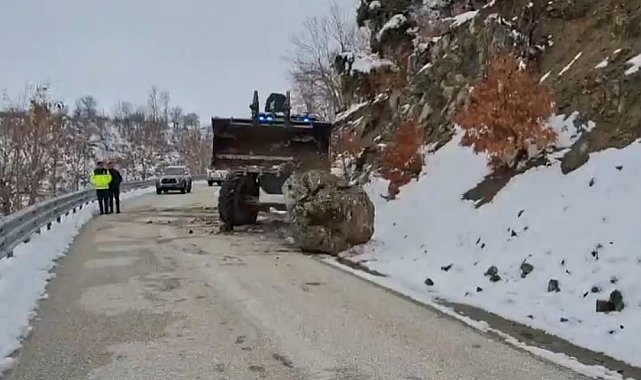 Kazıcı yükleyici yardımıyla yapılan çalışmalar sonucunda kaya parçası yoldan kaldırılarak ulaşım güvenli bir şekilde sağlandı. Yetkililer, sürücülere dikkatli olmaları konusunda uyarılarda bulunurken, bölgedeki yol güvenliği çalışmalarının devam edeceğini belirtti.