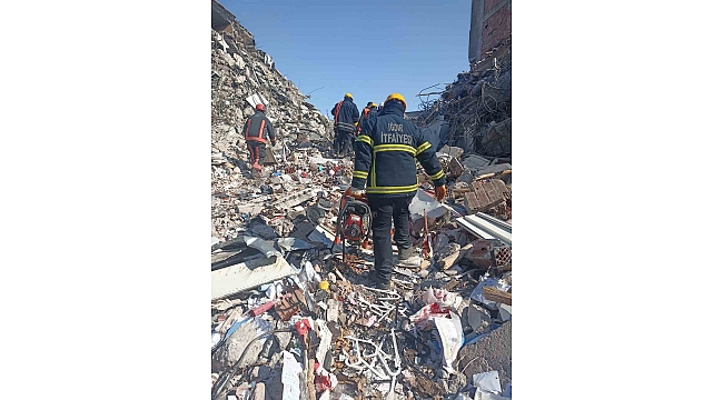 Türkiye'de meydana gelen büyük depremin ardından deprem bölgesine giden Iğdır Belediyesi itfaiye ekibi çalışmalarına devam ediyor.