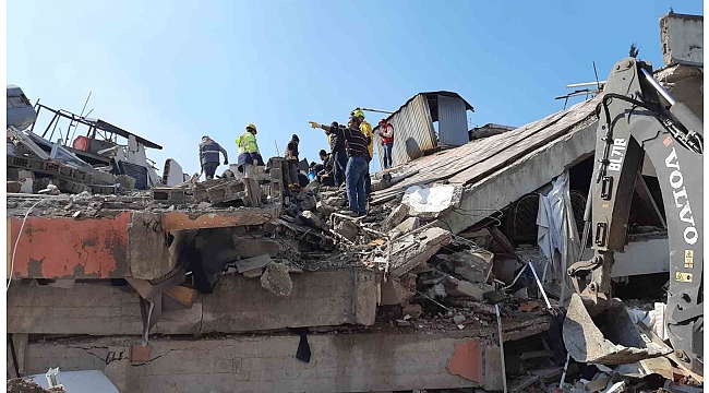 Antakya'da yıkılan binalarda ekiplerin arama kurtarma çalışmaları sürüyor.