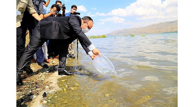 İlk defa üretimi yapılan 420 bin adet siraz balığı, Hazar Gölü'ne bırakıldı