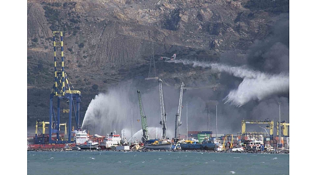 Hatay'ın İskenderun Limanı'nda depremde devrilen konteynerlerden çıkan yangına ekipler 4 gündür müdahale ediyor.