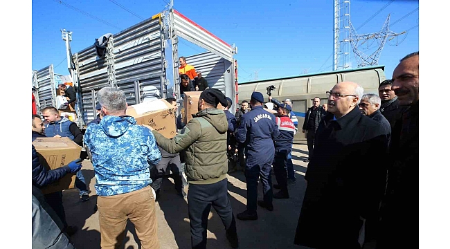 Kahramanmaraş'ta meydana gelen 7.7 ve 7.6'lık depremlerin ardından yüzyılın felaketi yaşanan bölgeye tüm Türkiye'den yardım paketleri gönderilirken, İzmir Valiliği koordinesinde bölgeye giden yardımlar havayolu, karayolu ve denizyolunun ardından demiryolu ile de gönderilmeye başlandı.