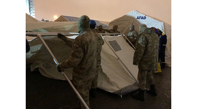Kahramanmaraş'ta meydana gelen 7.7 ve 7.6 büyüklüğündeki depremin ardından Elazığ'dan Malatya'ya destek olarak giden jandarma ekipleri, çadırlar kurmaya başladı.