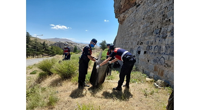 Elazığ'da jandarma ekipleri çevre temizliği yaparak örnek oldu.