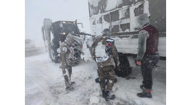 Elazığ'da yoğun kar yağışının etkili olduğu ve kar kalınlığının 2 metreyi aştığı Palu ve Karakoçan ilçesinde yolda mahsur kalan vatandaşlar jandarmadan yardım istedi. Palu İlçe Jandarma Komutanlığı Kayaönü ile Arındık Jandarma Karakol Komutanlığı ekipleri, kar ve tipi nedeniyle yolda mahsur kalan 6 araç ile 31 vatandaşı kurtarmak için seferber oldu. Bölgeye giden ekipler, özellikle tipinin etkili olduğu Kayaönü köyü mevkiindeki 29 vatandaşı donmaktan son anda kurtararak güvenli bölgeye aktardı. Daha sonra farklı bölgeye giden ekipler, daha sonra yolda kalan 2 vatandaşı daha kurtardı. 6 araç ise jandarma tarafından bulunduğu yerden çıkartılarak sahiplerine teslim edildi.
