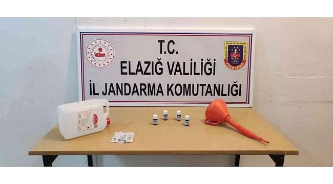 Elazığ'da jandarma ekiplerinin kaçak içki atölyesi kurulan bir eve düzenlediği operasyonda, 1 litre etil alkol, 4 şişe içinde 50 gram anason maddesi, 1 adet huni, 5 adet şırınga ele geçirilirken 1 şüpheli de gözaltına alındı.