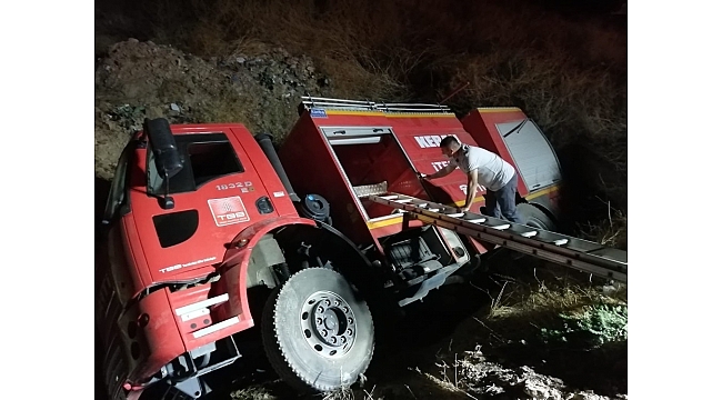 Elazığ'da 2 kişinin yaralandığı kamyon kazasına giden itfaiye aracı da şarampole devrildi.