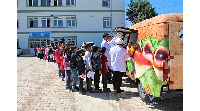 Öğrencilerden Zeliha Kaya ise, "Kantinbüs geldi. Bize hamburger, süt verdi. Bizde onlara hediye verdik. Çizdiğimiz resimleri ve boyadığımız ürünleri onlara verdik. Çok sevindik" şeklinde konuştu.