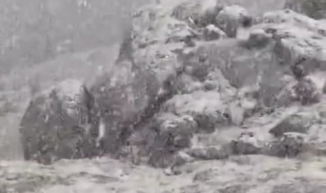 Dünya Doğa Koruma Birliğinin (IUCN) yayınladığı Nesli Tükenme Tehlikesi Altında Olan Türlerin Kırmızı Listesinde bulunan ve yasak avlanmalarının cezası 650 bin lirayı bulan dağ keçileri, kar yağışı altında yiyecek ararken görüntülendi. Yiyecek arayan dağ keçileri daha sonra gözden kayboldu.