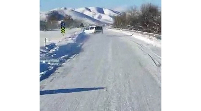 Yaşanan kaza araçta maddi hasara yol açarken, yetkililer oluşacak buzlanmalara karşı sürücüleri uyardı.