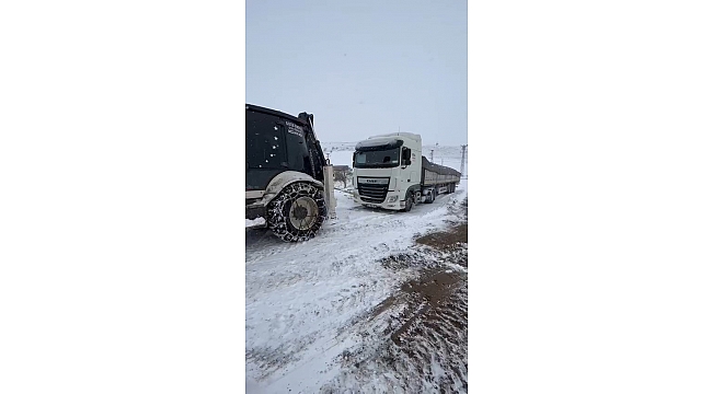 Elazığ'da sabah saatlerinde başlayan kar yağışı, etkisini sürdürüyor. Bu çerçevede Baskil ilçesine bağlı Beşbölük köyünde bir tırın mahsur kaldığı ihbarını alan İl Özel İdaresi ekipleri, hemen bölgeye intikal etti. Kepçeye bağlanan tır çekilerek kurtardı.