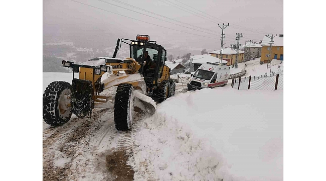 Karabük'te kar yağışı nedeniyle 14 köy yolu ulaşıma kapandı. 6 köy yolunun kapalı olduğu Eflani ilçesine bağlı Kutluören Köyü'ne hasta almaya giden ambulans karla kaplı yolda mahsur kaldı. 112 Acil Servis ekiplerinin ihbarı üzerine olay yerine gelen İl Özel İdaresi ekipleri kara saplanan ambulansı kurtararak ilçe merkezine ulaşmasını sağladı.